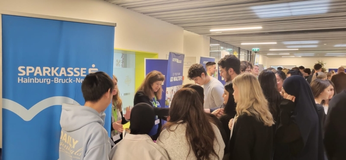 Die Schülerinnen und Schüler nutzten die Möglichkeit für eine individuelle Beratung bei den Messeständen. Hier konnten sie ausführliche Informationen einholen sowie wichtige Kontakte knüpfen. – be.networking